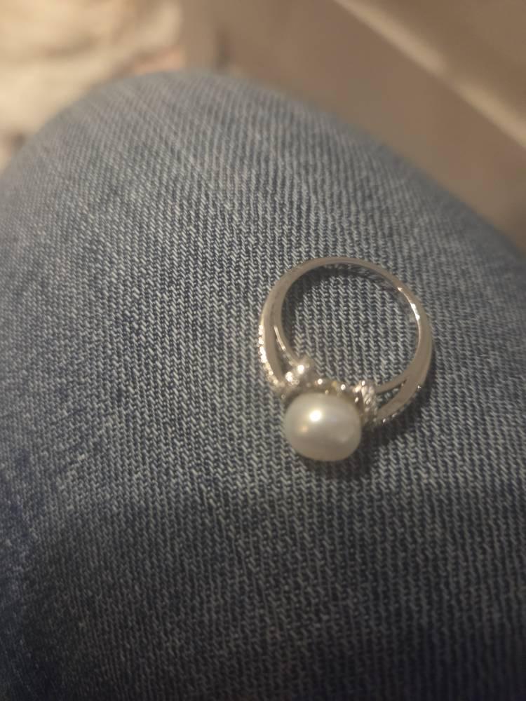 Genuine Cultured soft white Pearl ring in sterling silver with rhodium plating.