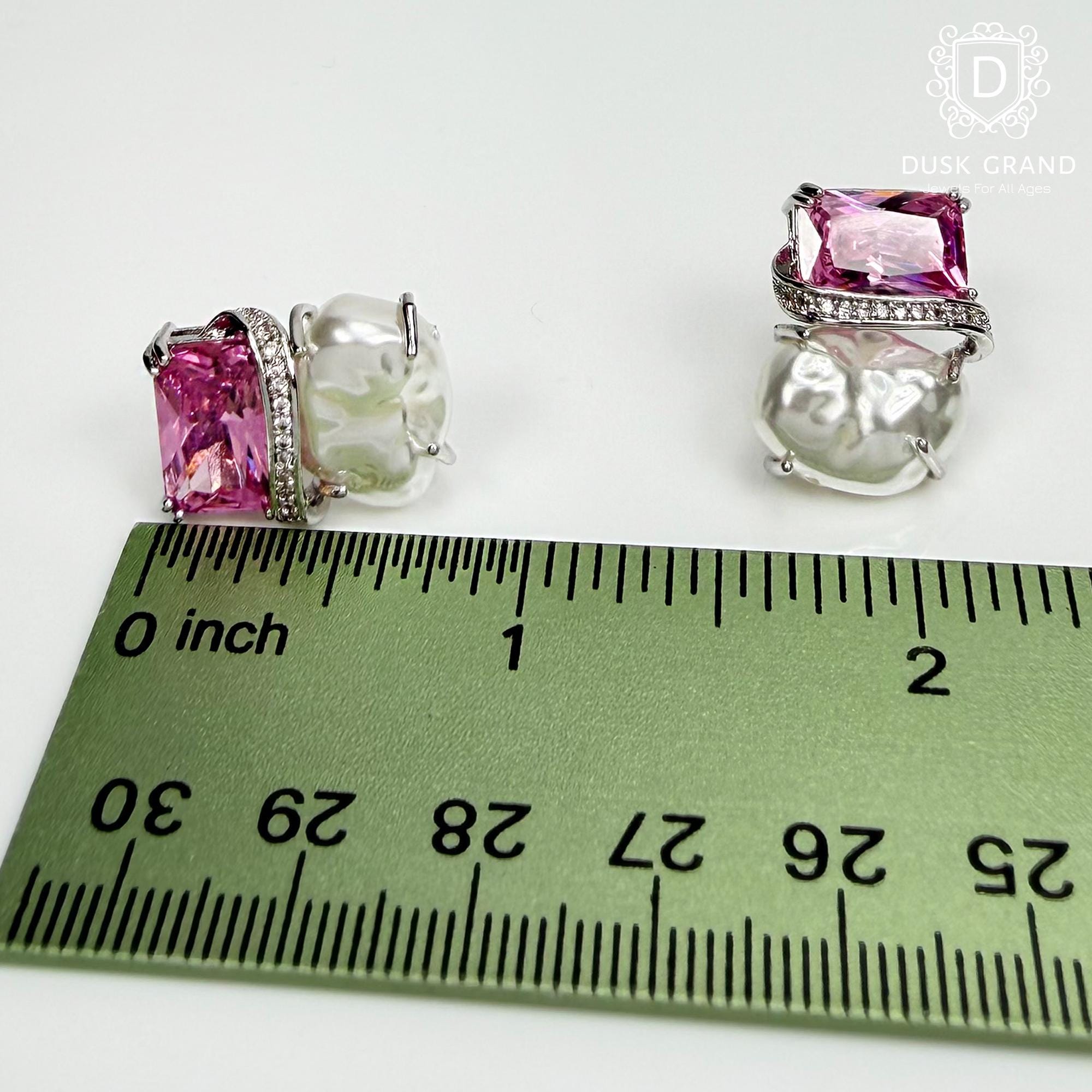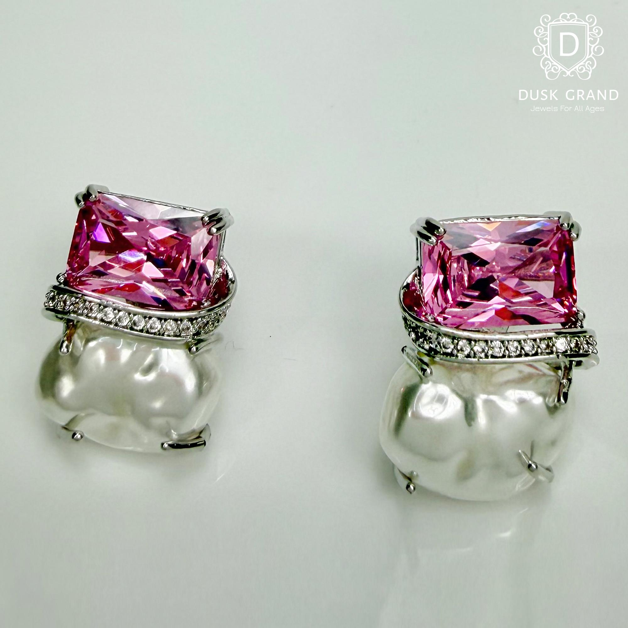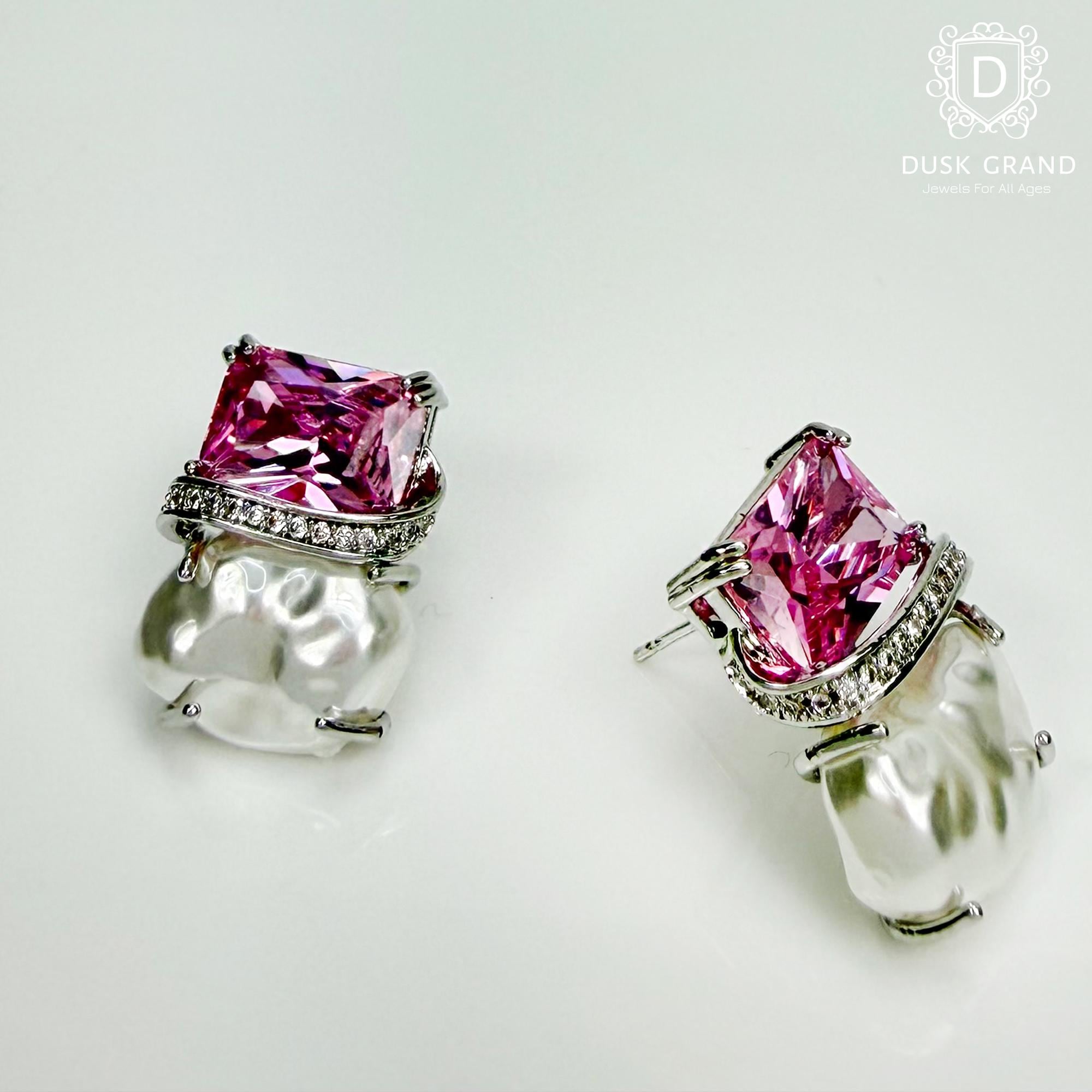 Add refined elegance to your style with these Light Pink Crystal and baroque pearl earrings. Each earring showcases a light pink crystal paired with a natural baroque pearl — creating a luxurious contrast of color and texture.