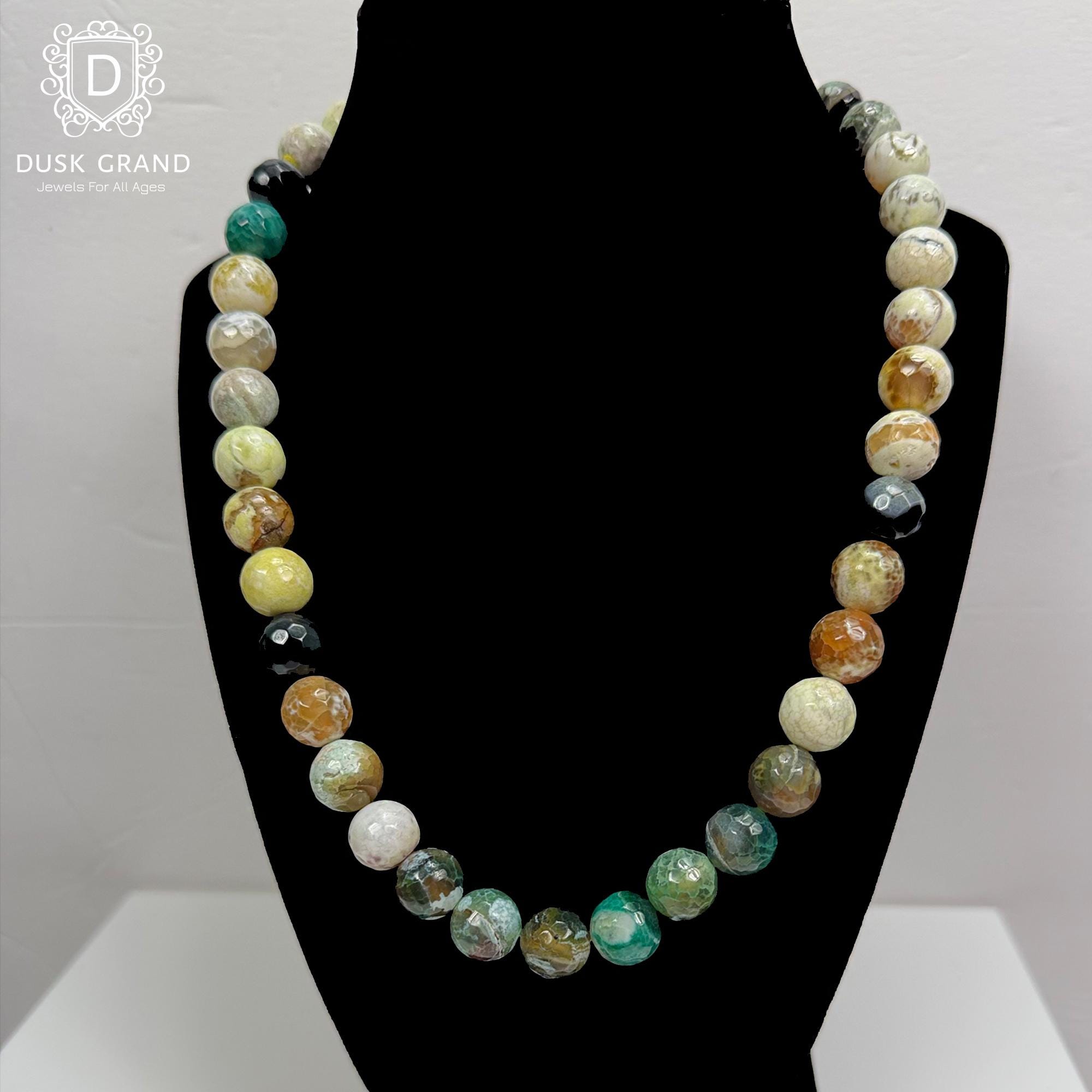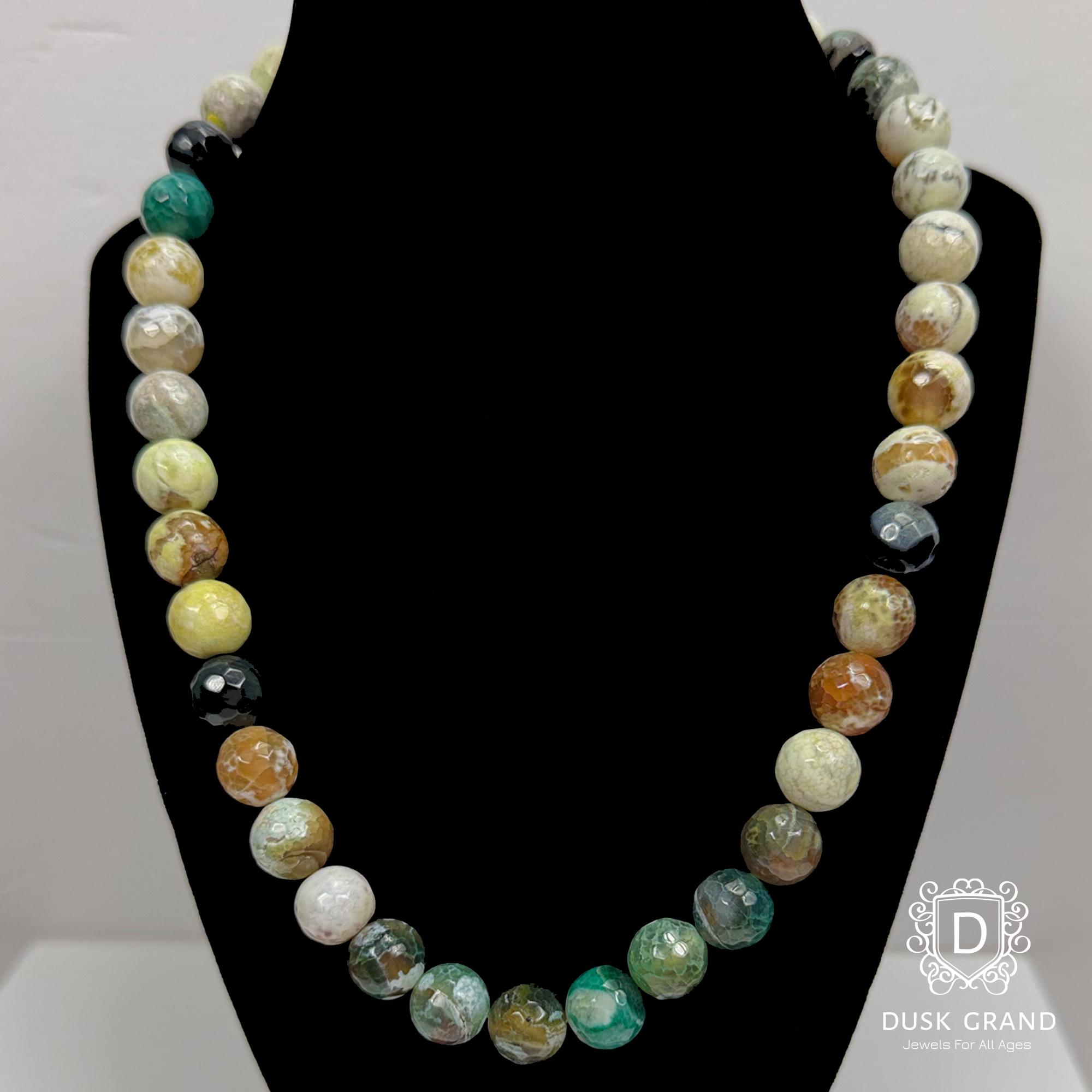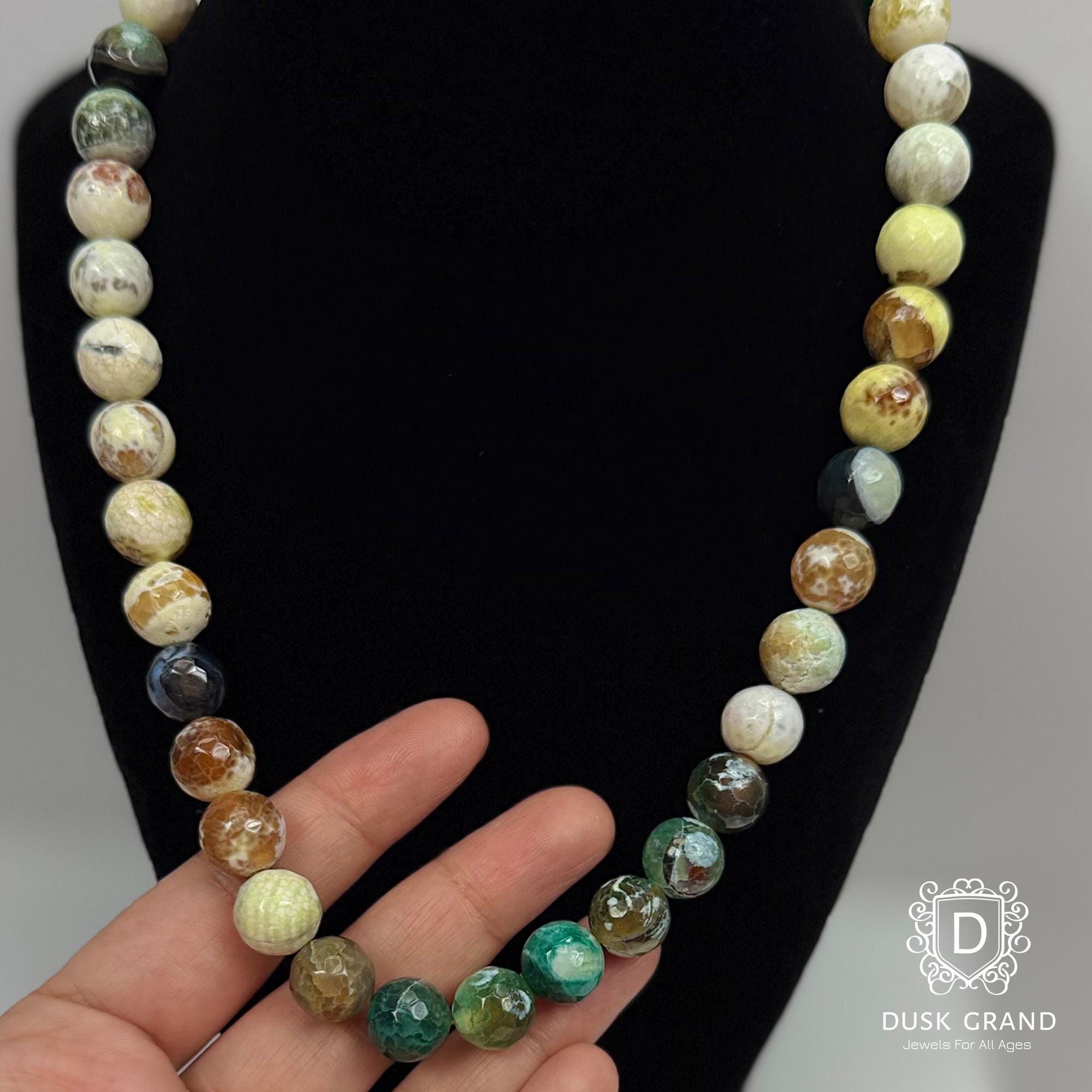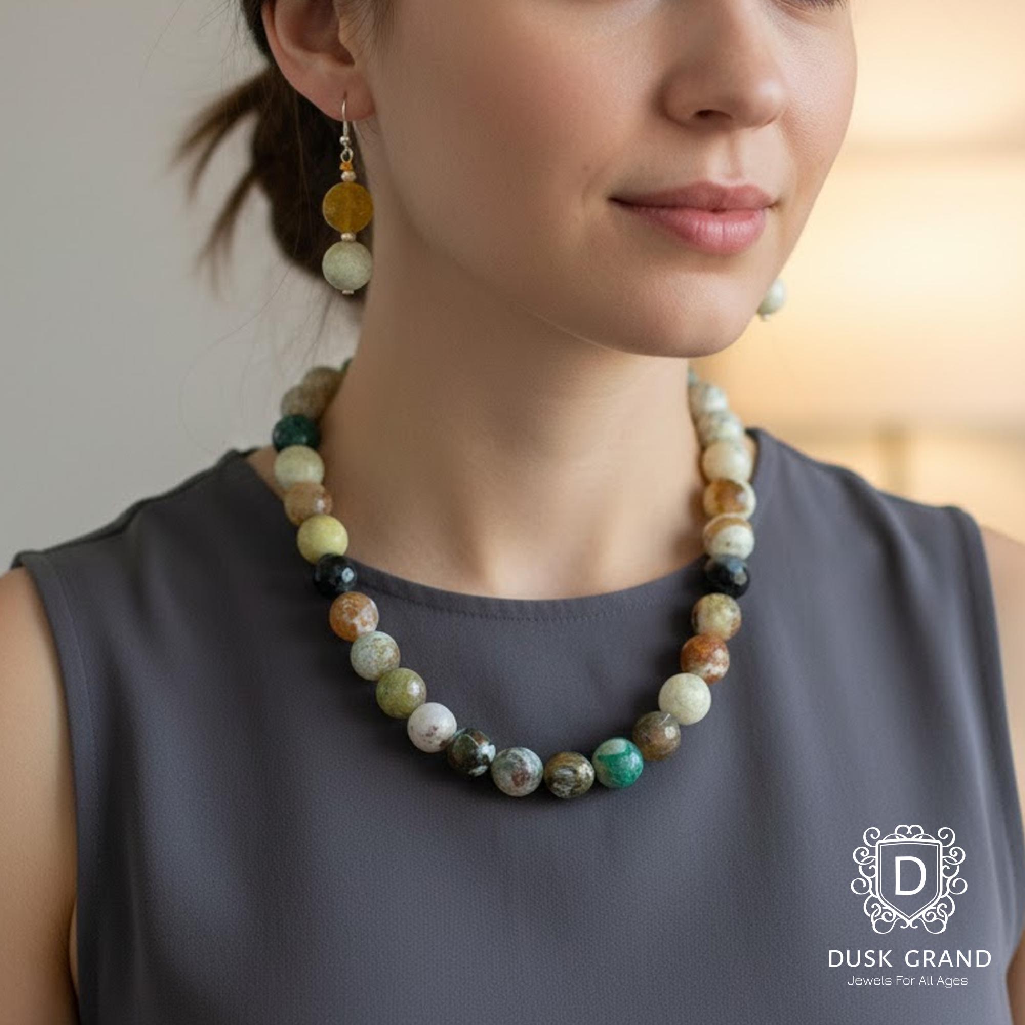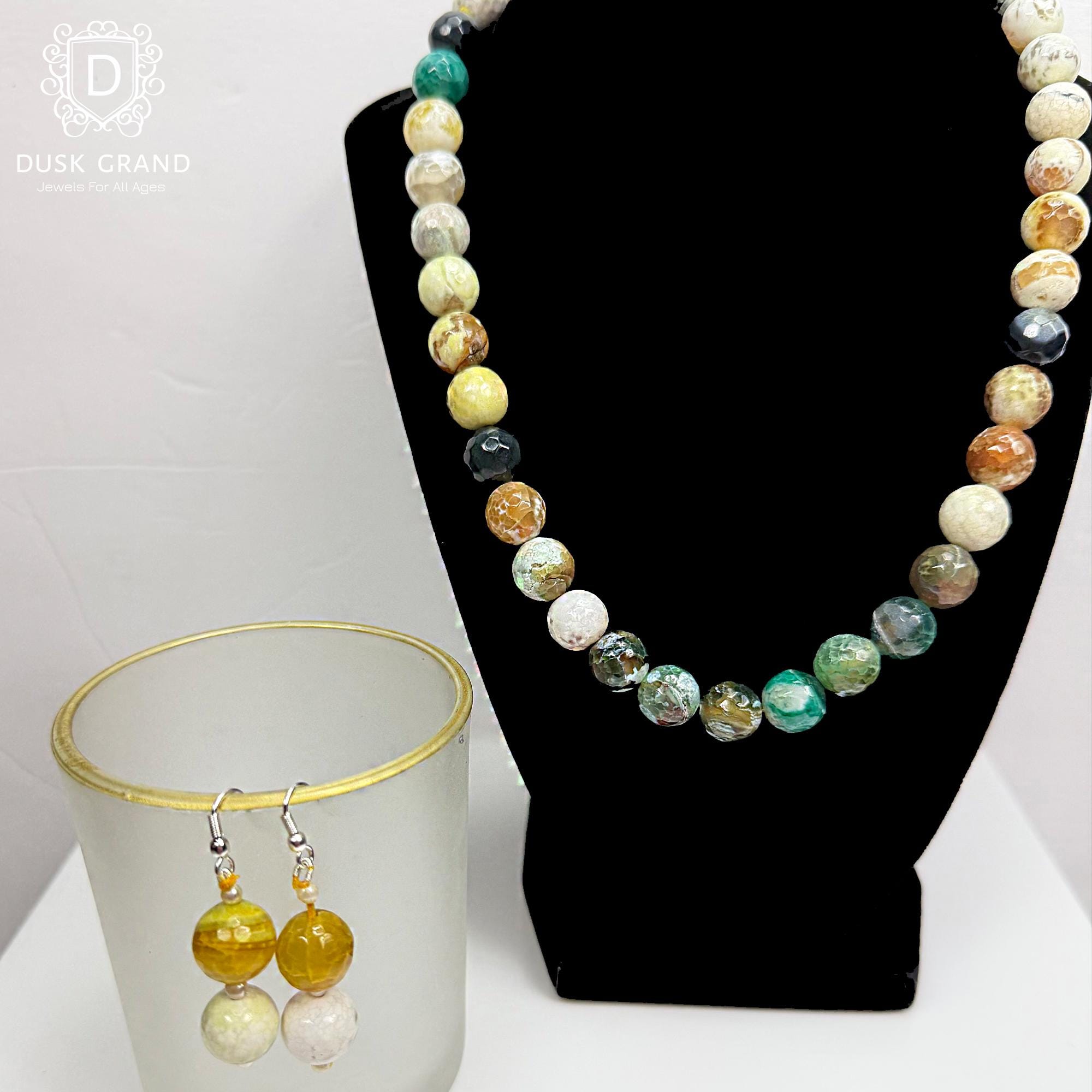 Bring color and natural beauty to your style with this multicolor agate beaded necklace and matching earrings set. Each bead is made from genuine agate stone, showcasing unique earthy tones of green, brown, cream, and gold — making every piece one of a kind.