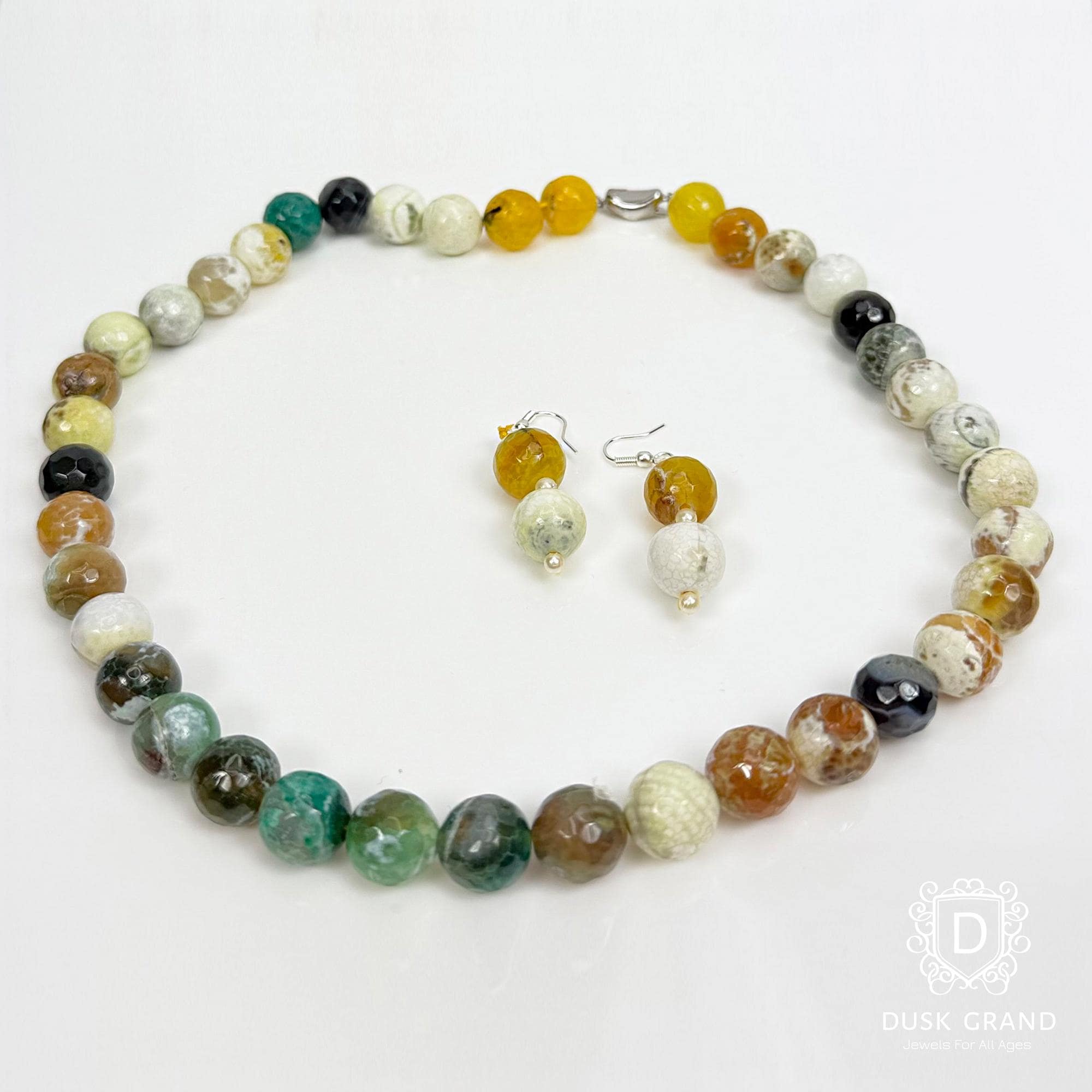 Handmade Multicolor Agate Beaded Necklace and Earring Set: Natural Stone Jewelry