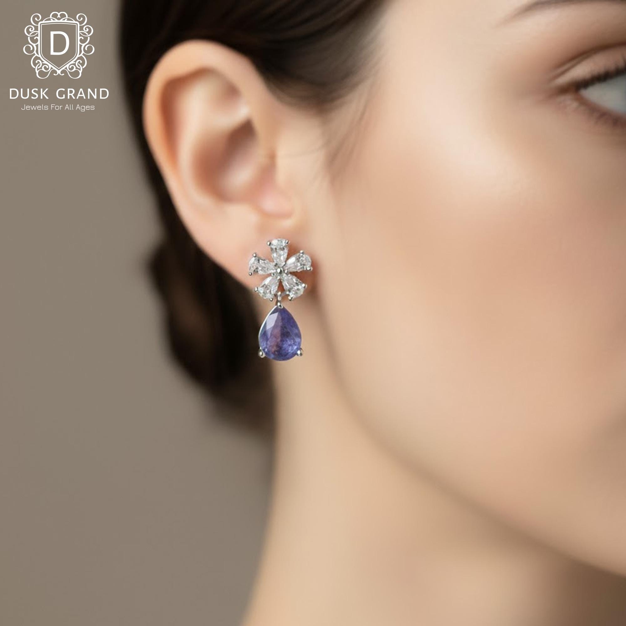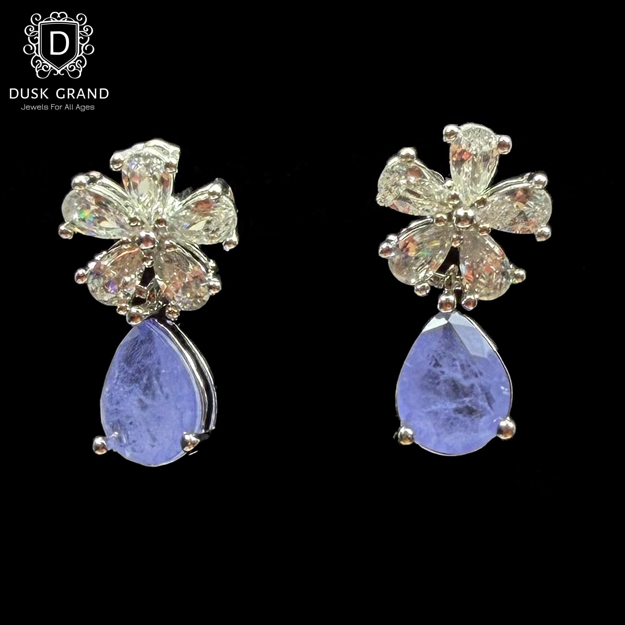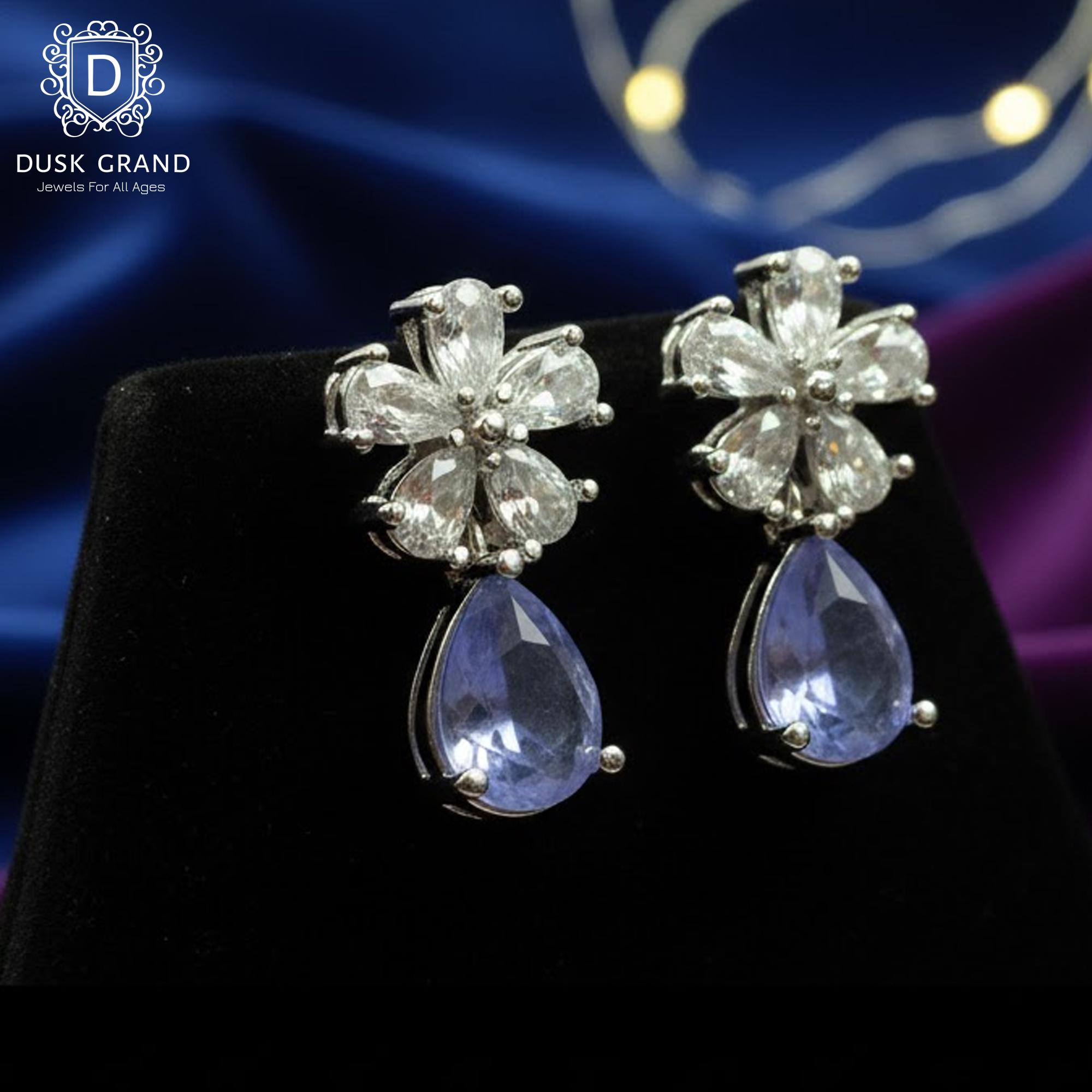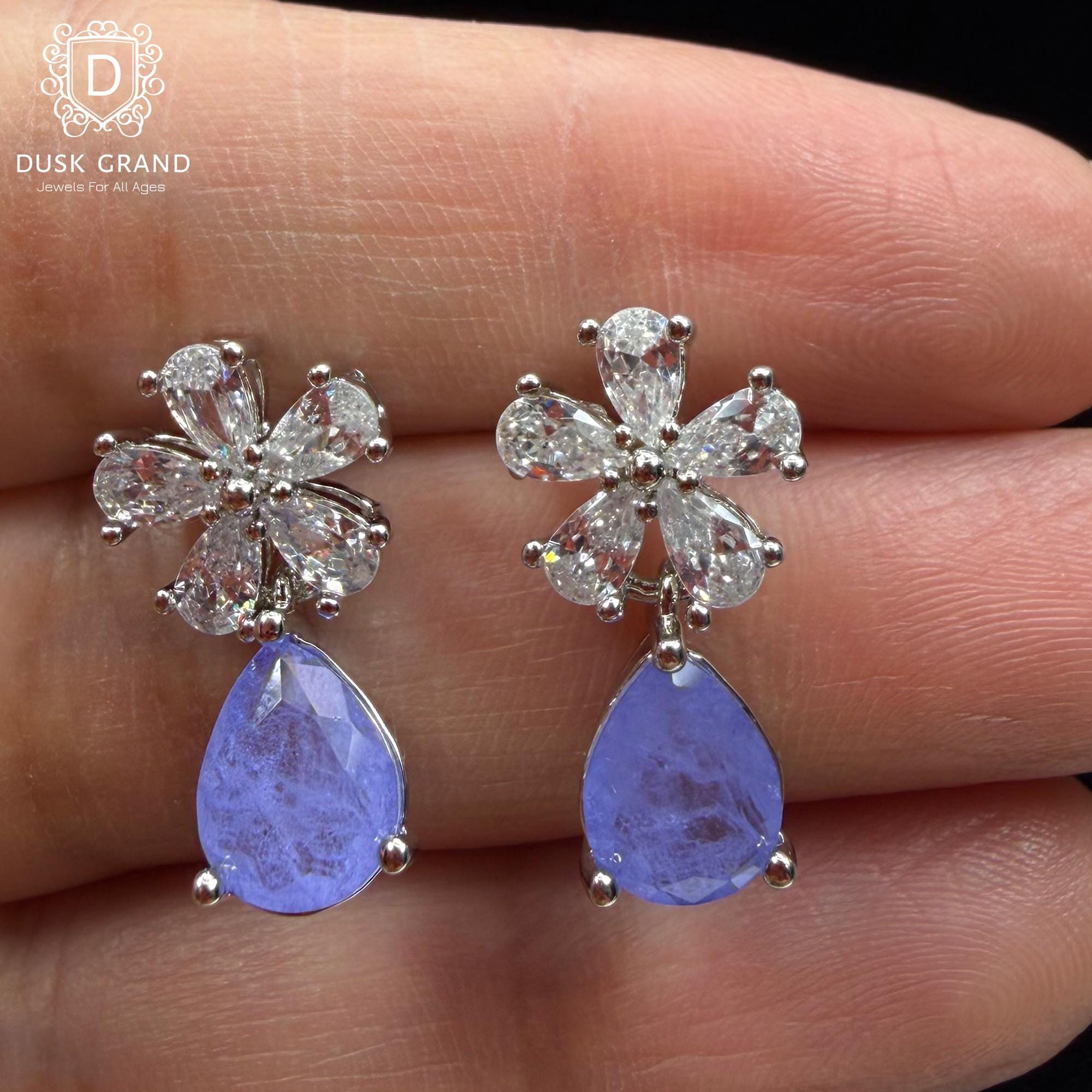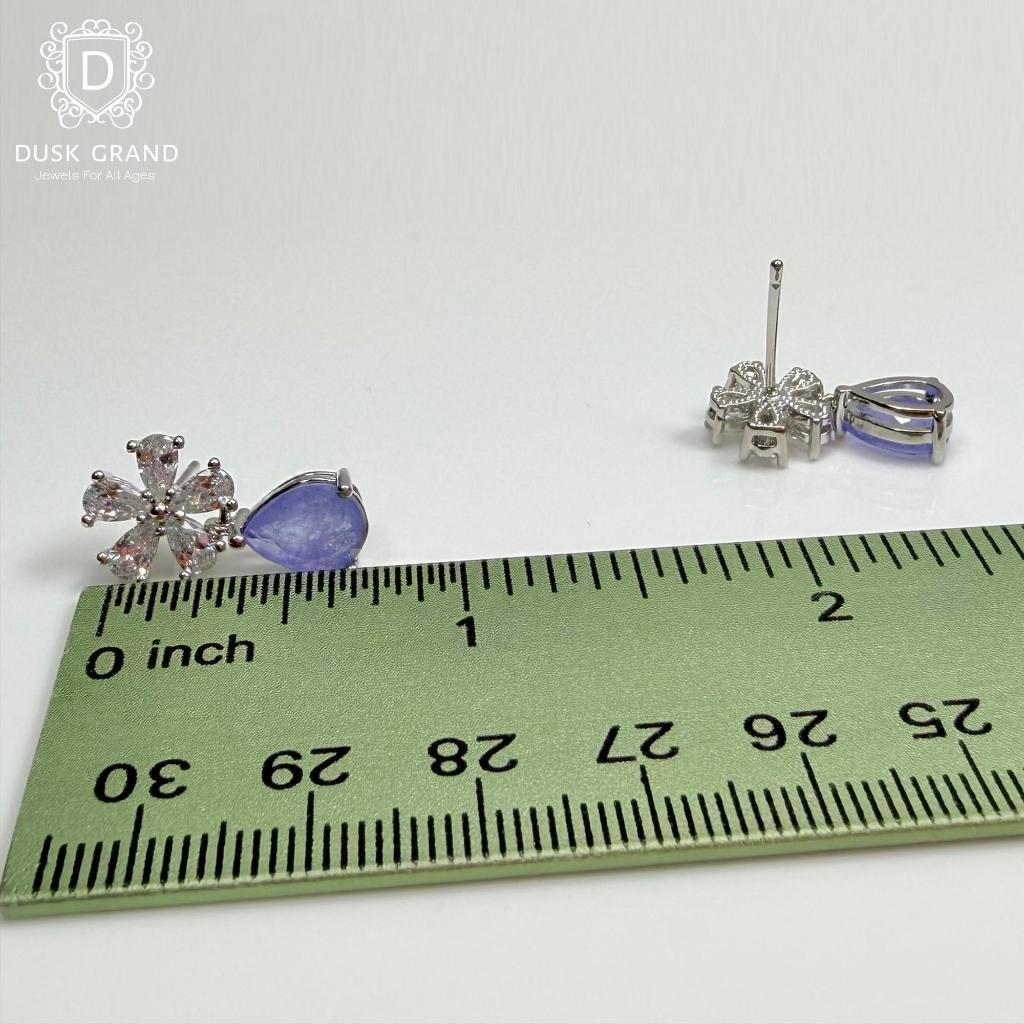 Add a touch of elegance to any look with these stunning Purple teardrop dangle earrings. The top features a dazzling flower design made of high-quality cubic zirconia crystals arranged in a petal pattern, paired with a Purple teardrop stone that adds a romantic and luxurious feel.