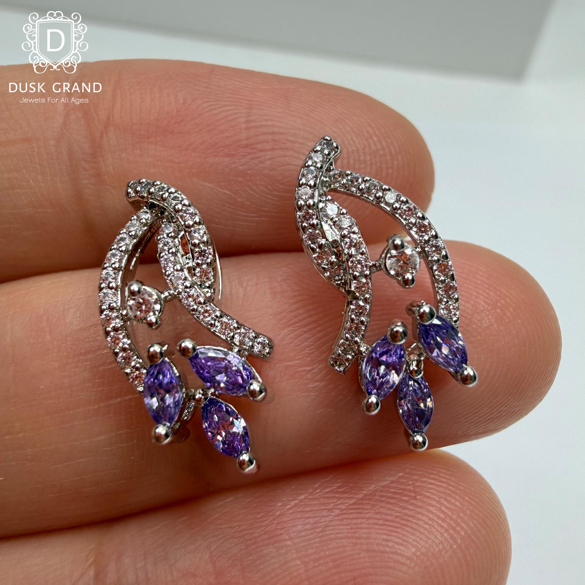 Add a touch of elegance to your everyday or special-occasion look with these stunning purple marquise stone stud earrings. Designed in a graceful leaf-inspired pattern, these earrings feature shimmering purple marquise-cut stones accented with sparkling clear cubic zirconia, all set in a polished silver-tone finish.