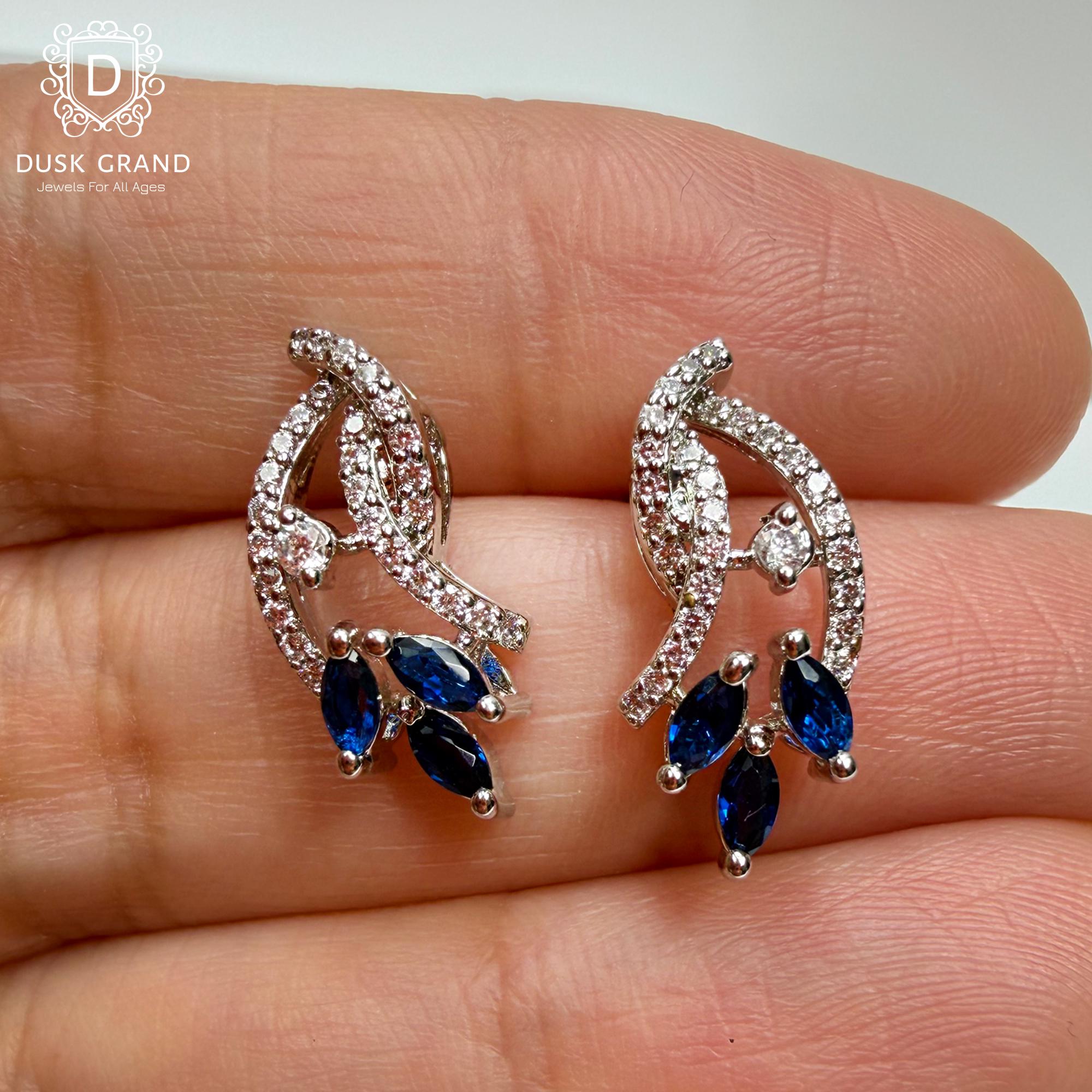 Add a touch of elegance to your everyday or special-occasion look with these stunning Simulant Sapphire Blue stone stud earrings. Designed in a graceful leaf-inspired pattern, these earrings feature shimmering Simulant Sapphire Blue-cut stones accented with sparkling clear cubic zirconia, all set in a polished silver-tone finish.