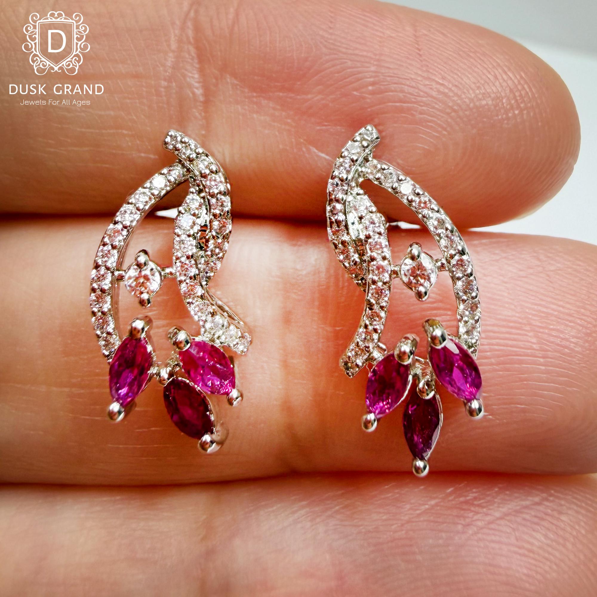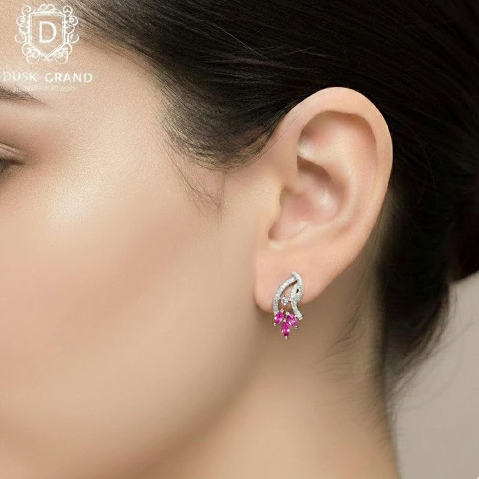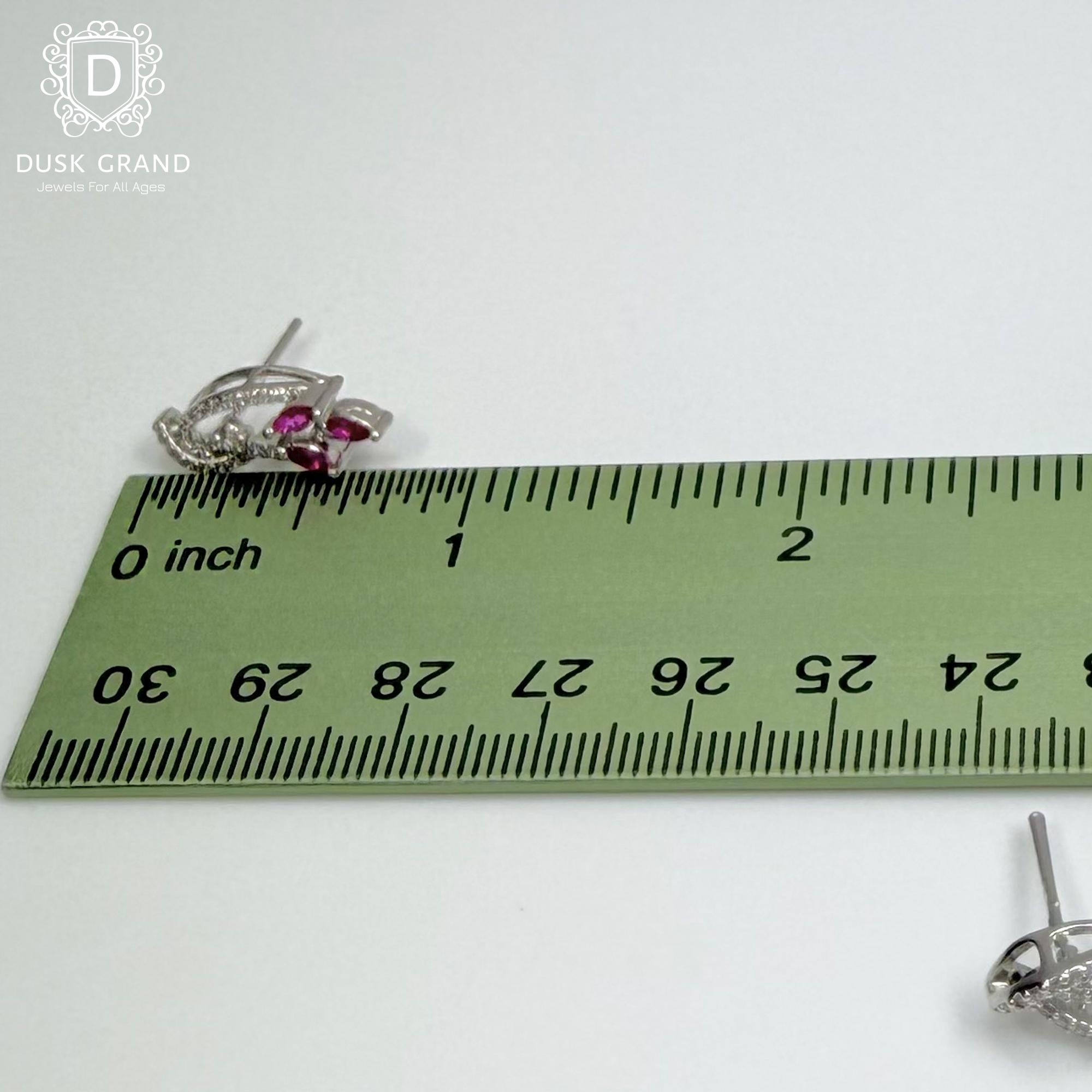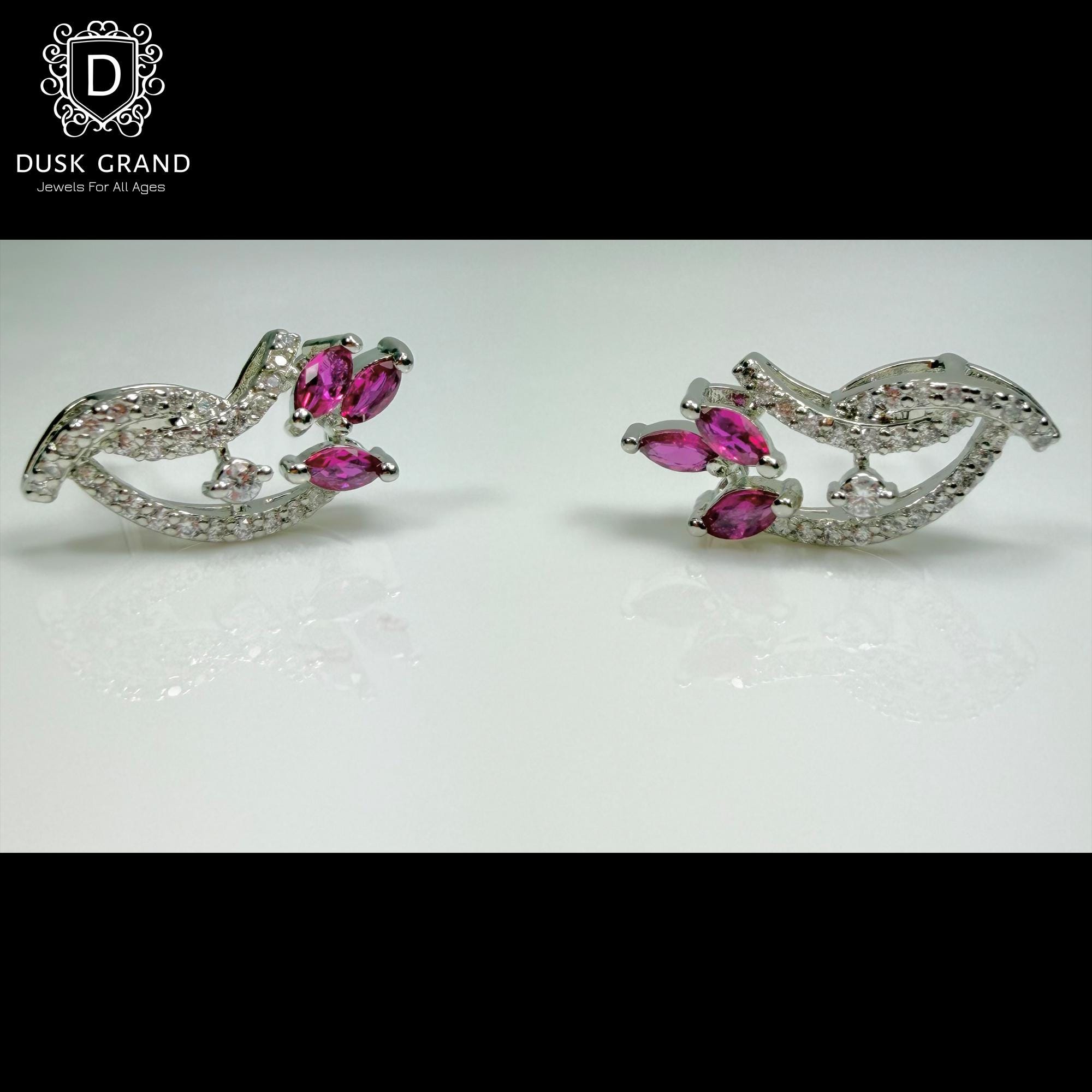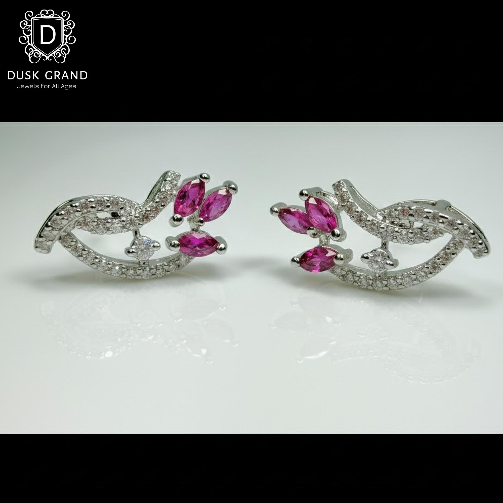 Add a touch of elegance to your everyday or special-occasion look with these stunning Simulant Ruby Pink stone stud earrings. Designed in a graceful leaf-inspired pattern, these earrings feature shimmering Simulant Ruby Pink-cut stones accented with sparkling clear cubic zirconia, all set in a polished silver-tone finish.