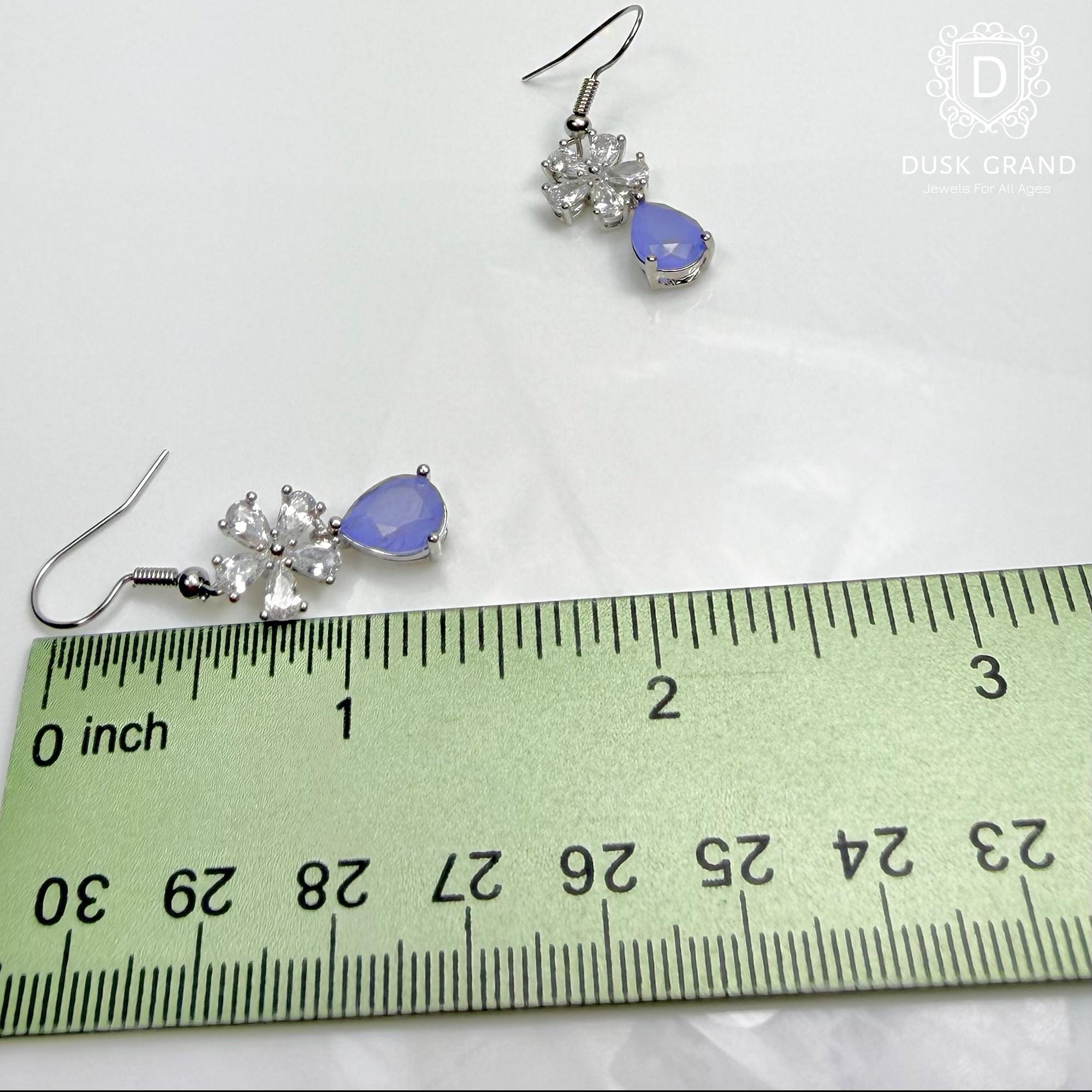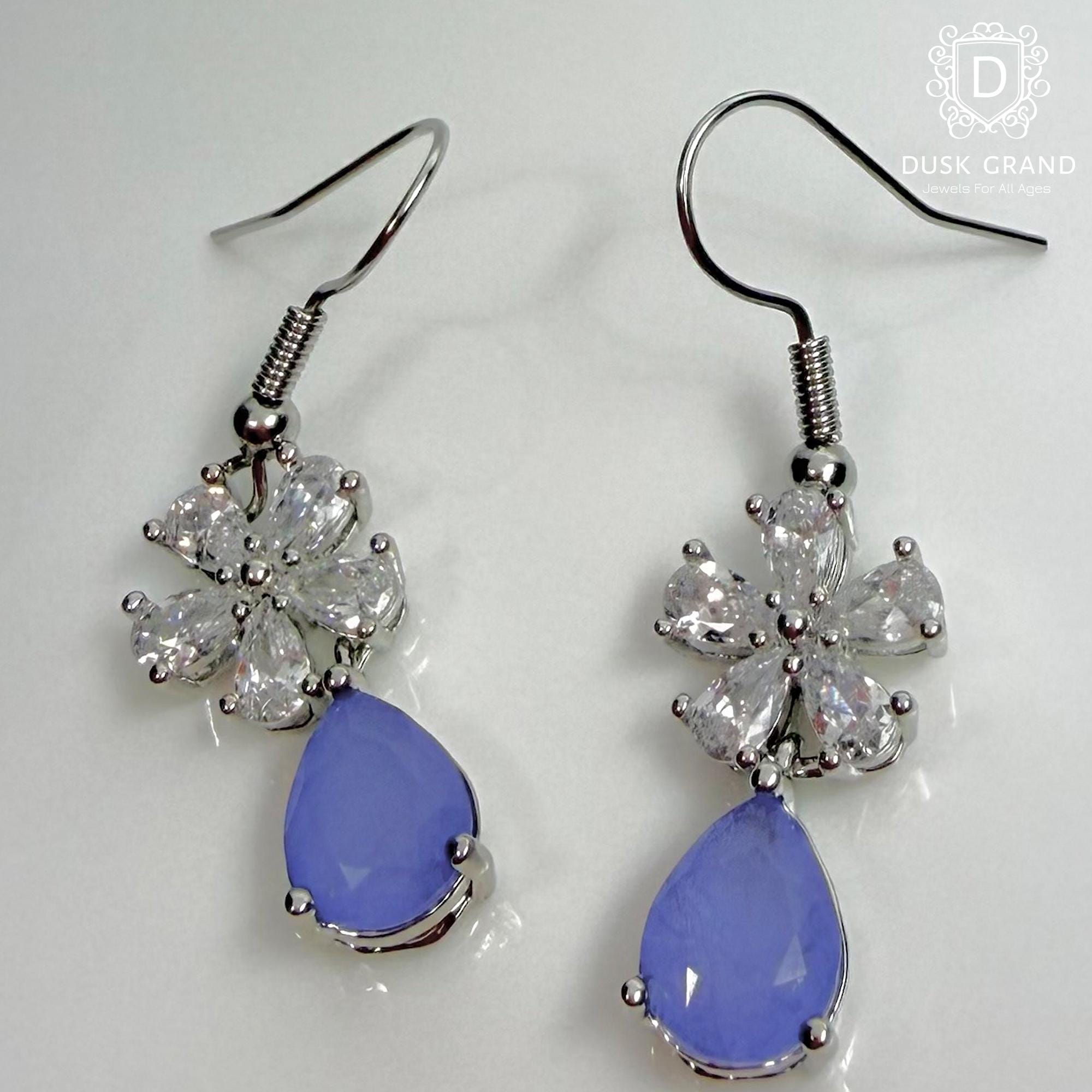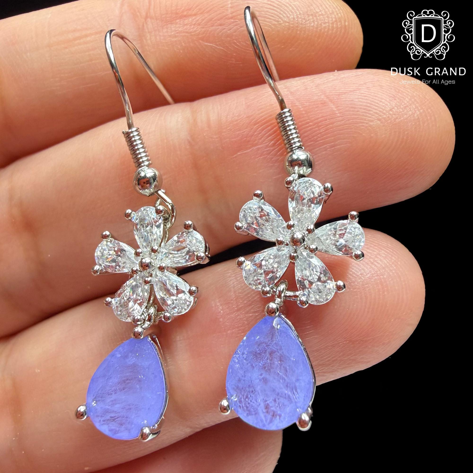 Add a touch of elegance to any look with these stunning Purple teardrop dangle hoop earrings. The top features a dazzling flower design made of high-quality cubic zirconia crystals arranged in a petal pattern, paired with a Green teardrop stone that adds a romantic and luxurious feel.