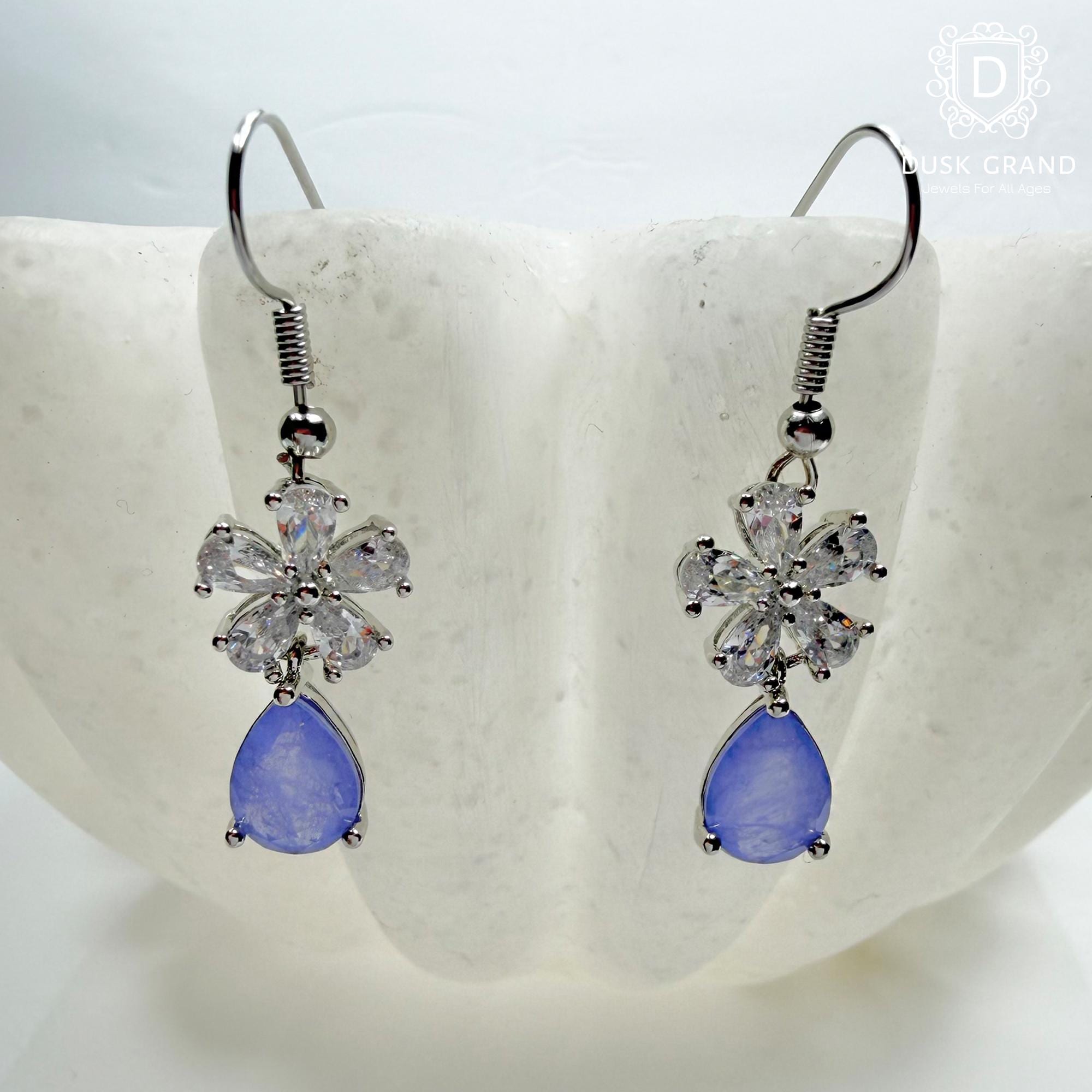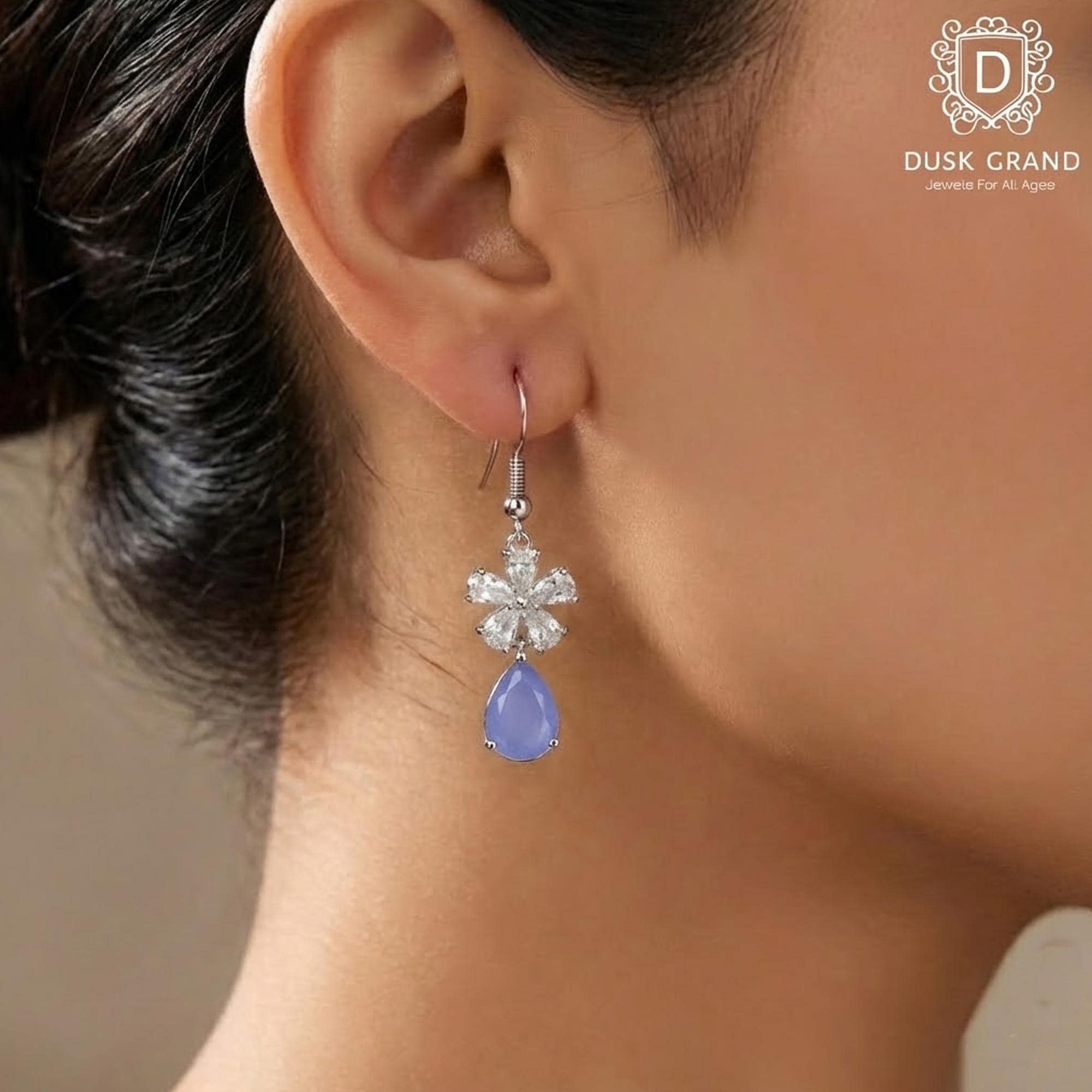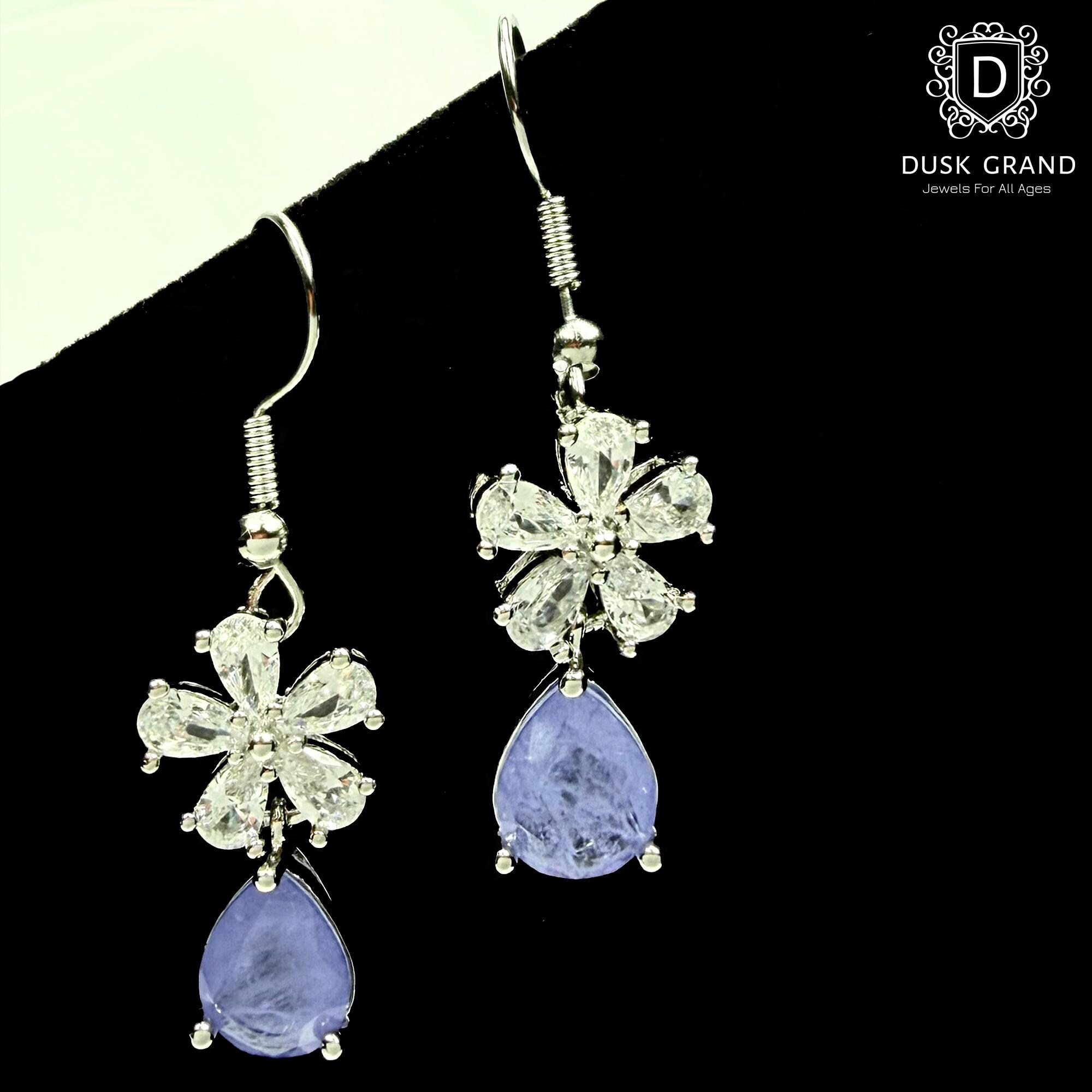 Add a touch of elegance to any look with these stunning Purple teardrop dangle hoop earrings. The top features a dazzling flower design made of high-quality cubic zirconia crystals arranged in a petal pattern, paired with a Green teardrop stone that adds a romantic and luxurious feel.